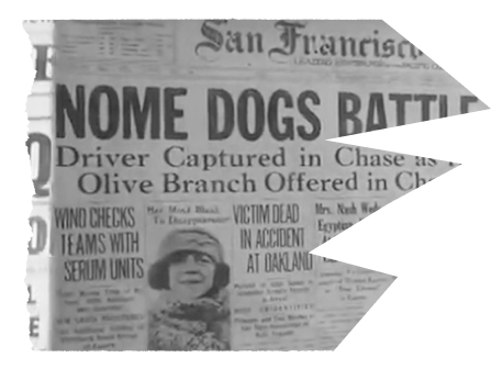 в сильнейший буран. Пёс смог вывести упряжку к придорожному домику, где команда смогла отогреться и отдохнуть.
